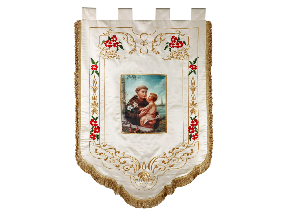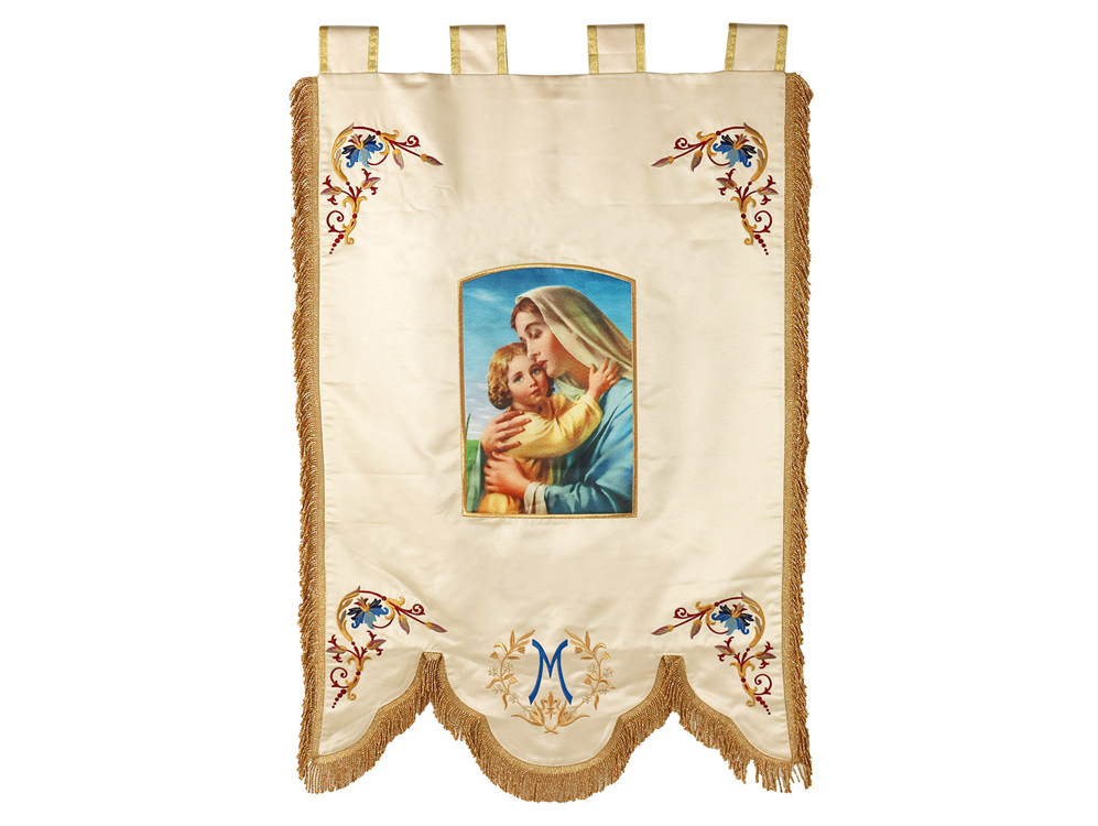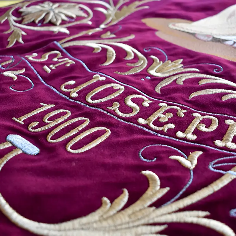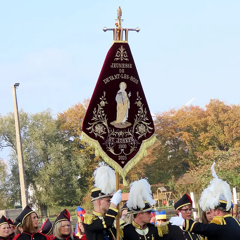 Nous concevons et réalisons des bannières de procession destinées aux manifestations religieuses, civiques ou commémoratives.
