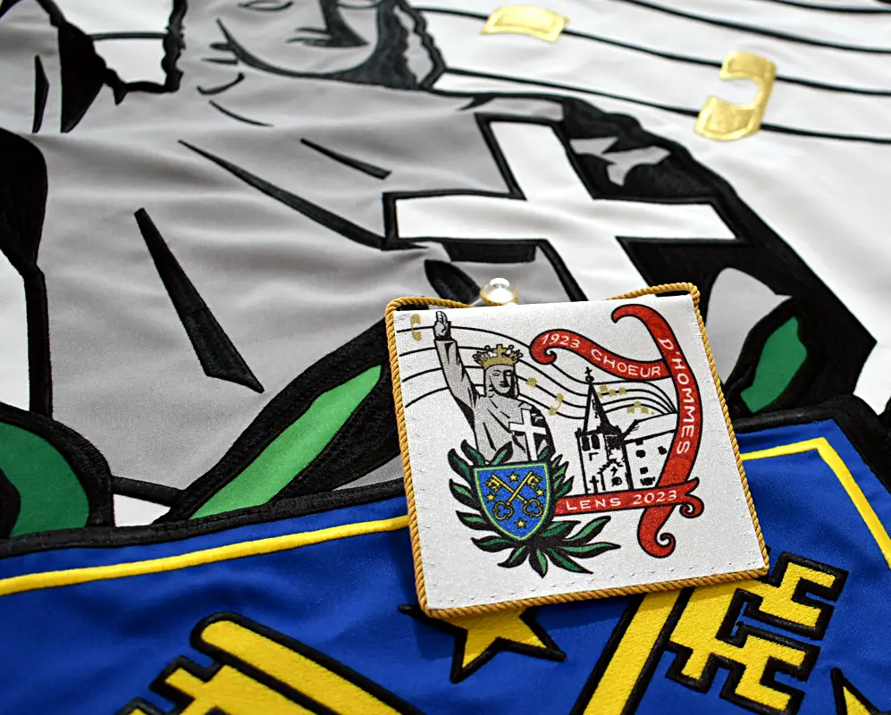 Vous avez la possibilité de réaliser des fanions en reproduisant le visuel de vos étendards.