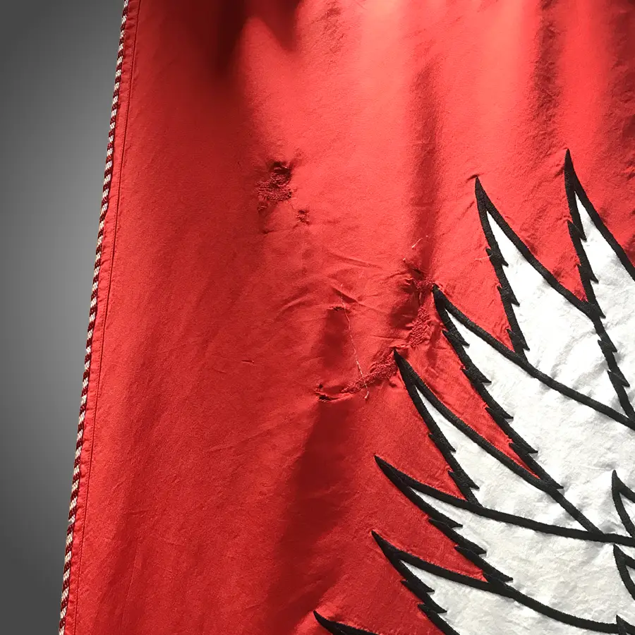 La restauration d'un drapeau ou de vieilles broderies requiert un travail complexe, principalement effectué à la main.